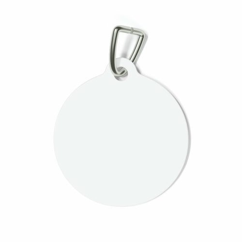 Personalized pet tags provide a fresh way to spice up a furry friend's collar. The tag and clip are both made of metal. This increased durability comes in handy, as collar pieces can snag on brush, corners, etc. The base color is white, giving designs an even printing surface. Both sides are flattened.
